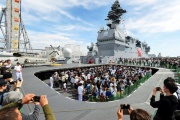 海上自衛隊最大の護衛艦「かが」が大阪・天保山に寄港し、20日、大阪で初となる一般公開があった。約2万1千人が訪れ、艦内を見学して回った。